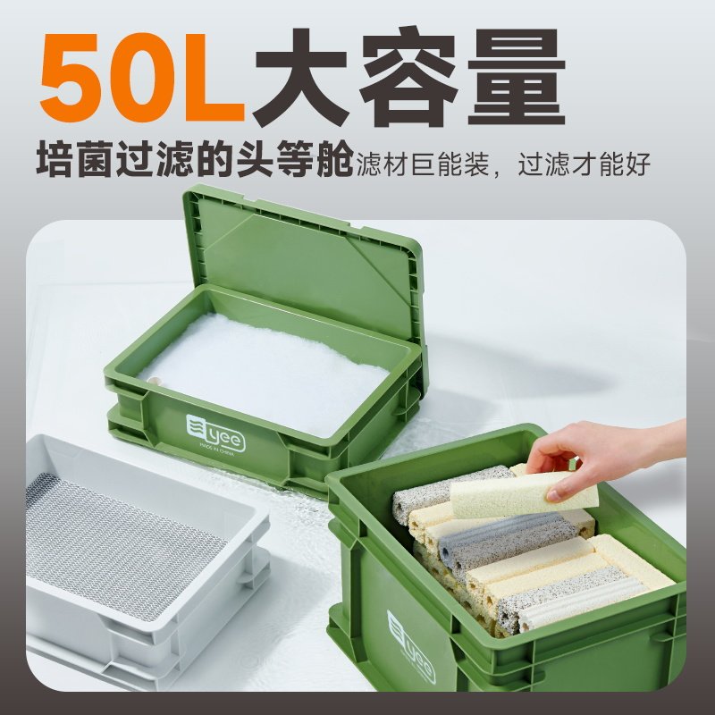 Yee鱼缸周转箱过滤器是一款高效静音的外置过滤设备,专为鱼缸、鱼池设计。采用多层滴流盒结构,搭配生化滤材,有效分解氨氮、去除油膜,提升水质清澈度。外置过滤桶设计节省缸内空间,水循环系统运行平稳,噪音极低,营造安静观赏环境。周转箱材质坚固耐用,安装简便,支持DIY扩展,适用于淡水、海水等多种水体。其强大的生物过滤与物理过滤结合,确保水体生态平衡,减少换水频率,是提升水族养护效率的理想选择,特别适合中大型鱼缸及庭院鱼池使用。