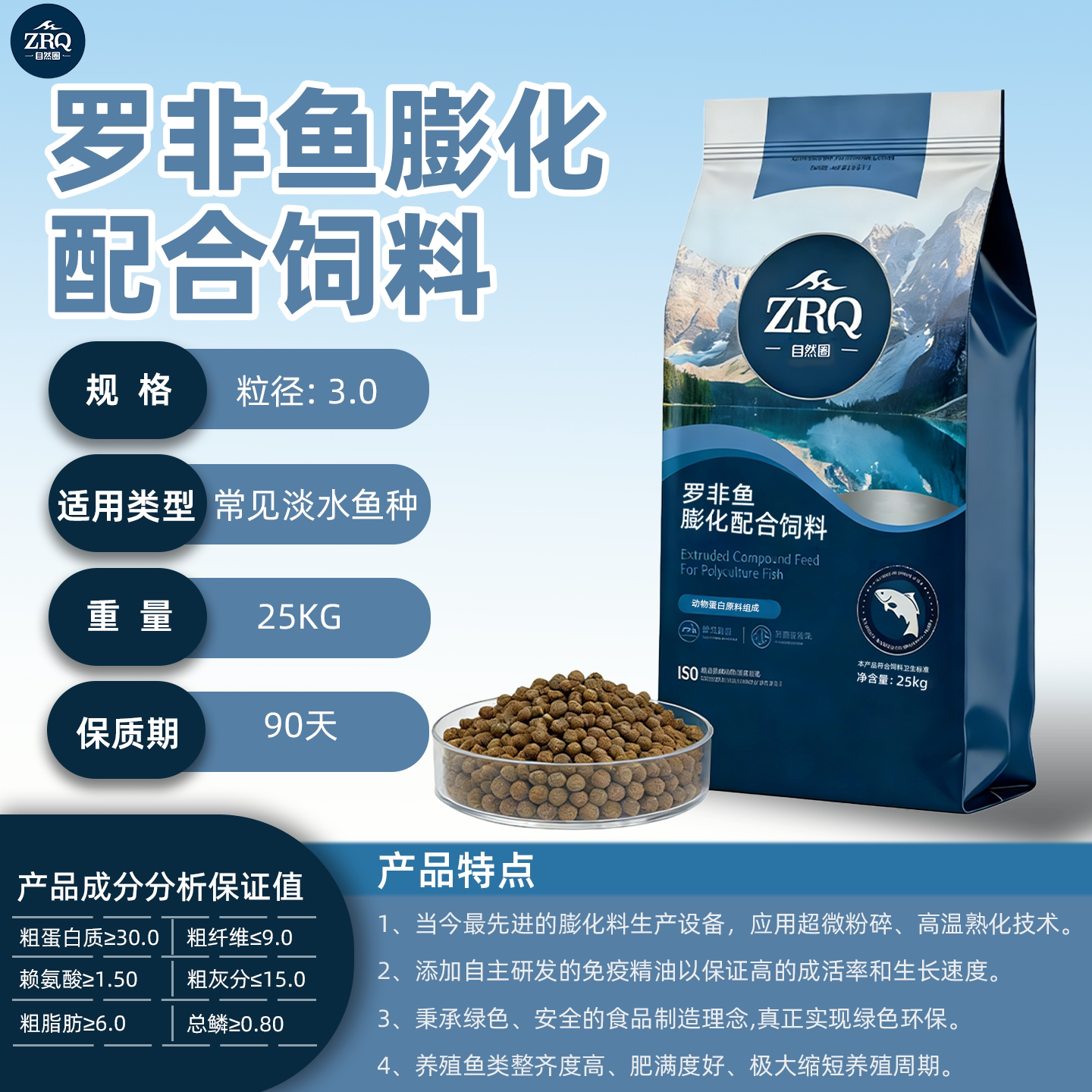 天猫自然圈罗非鱼饲料养殖专用高蛋白大小颗粒鱼粮膨化料福寿鱼食包邮