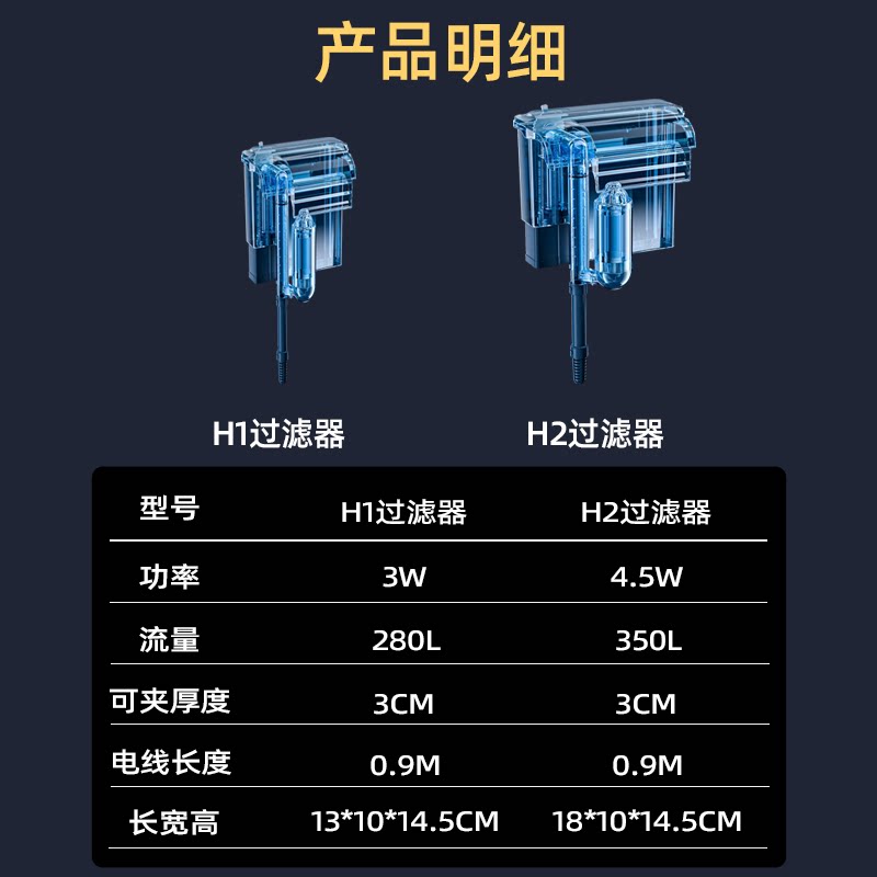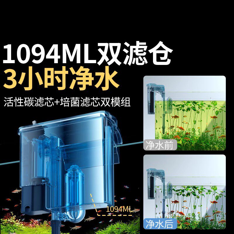 天猫水屿鱼鱼缸过滤器循环水泵瀑布壁挂式三合一净水制氧除油膜培菌