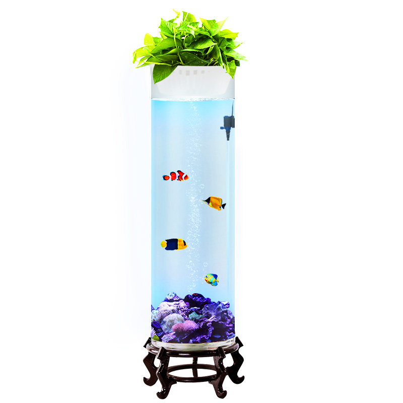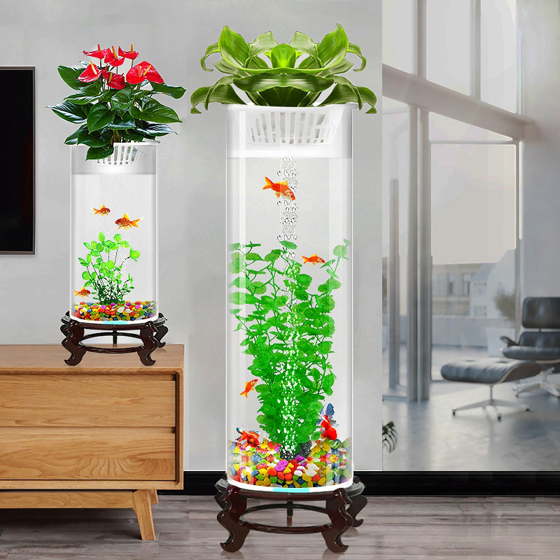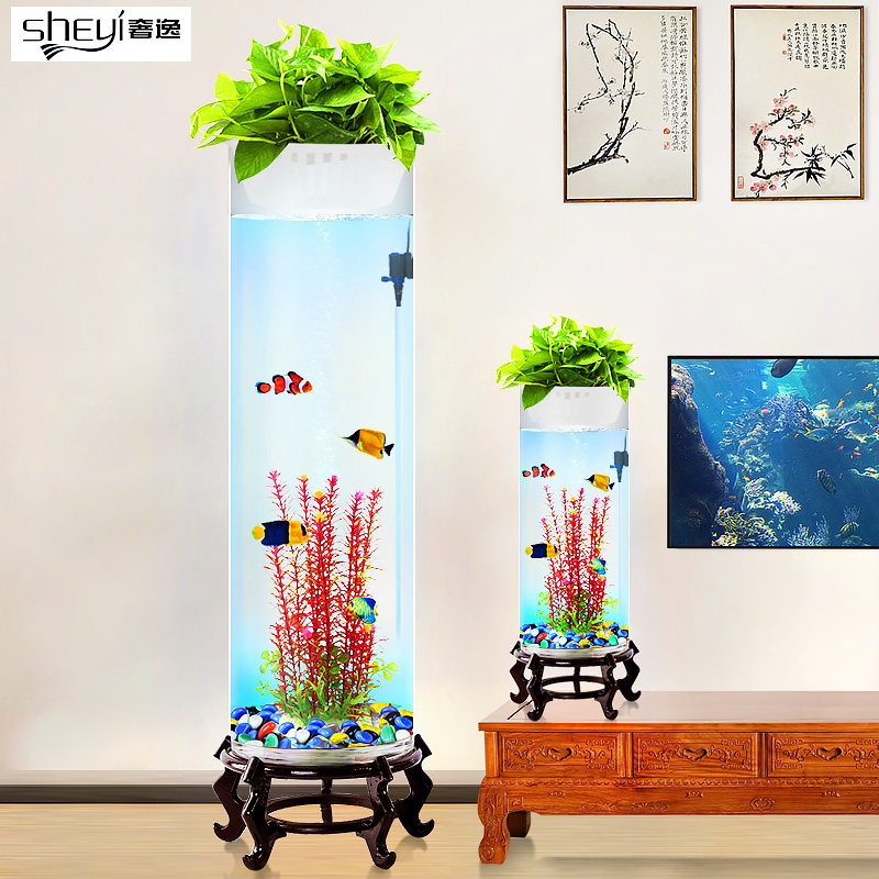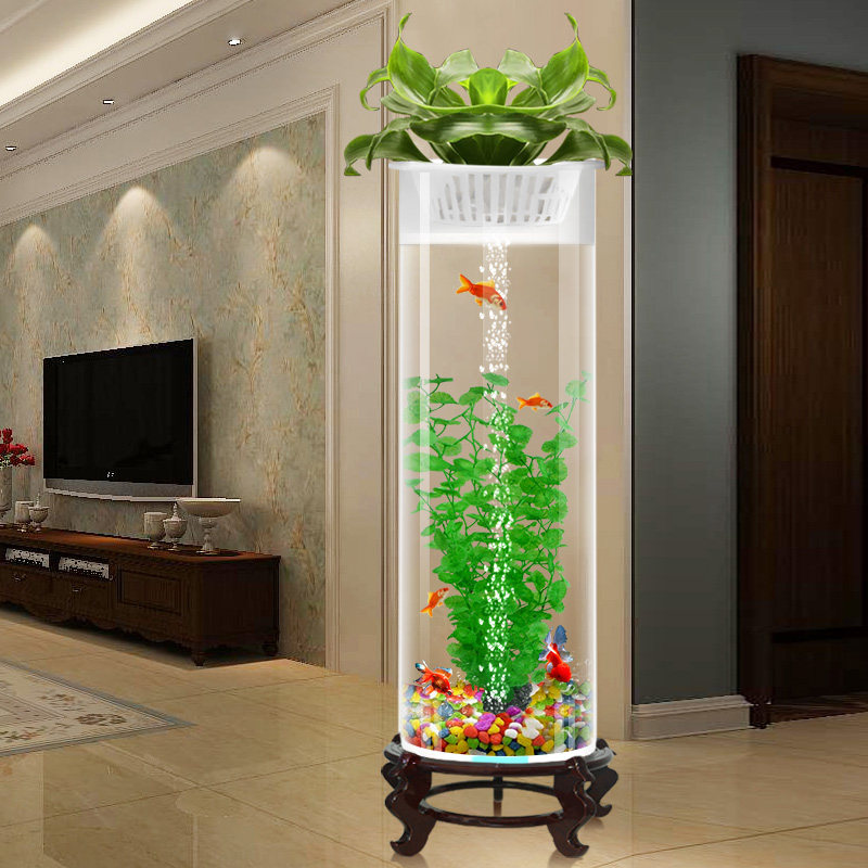 淘宝圆柱形鱼缸客小型立式落地金鱼缸 生态自动过滤水族箱免换水