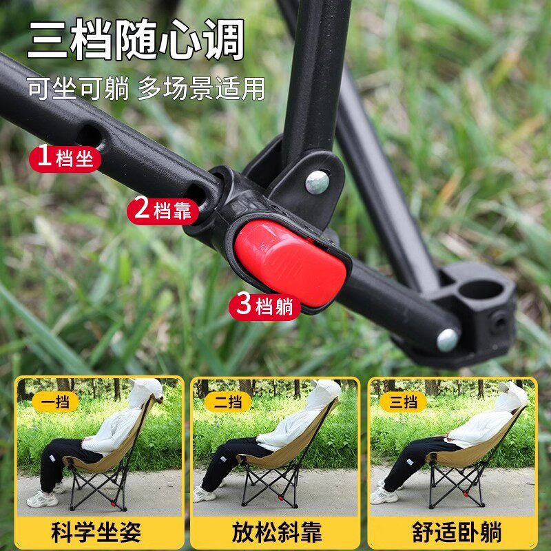 户外折叠椅加高月亮椅可调节露营椅子便携午休躺椅钓鱼椅凳沙滩椅