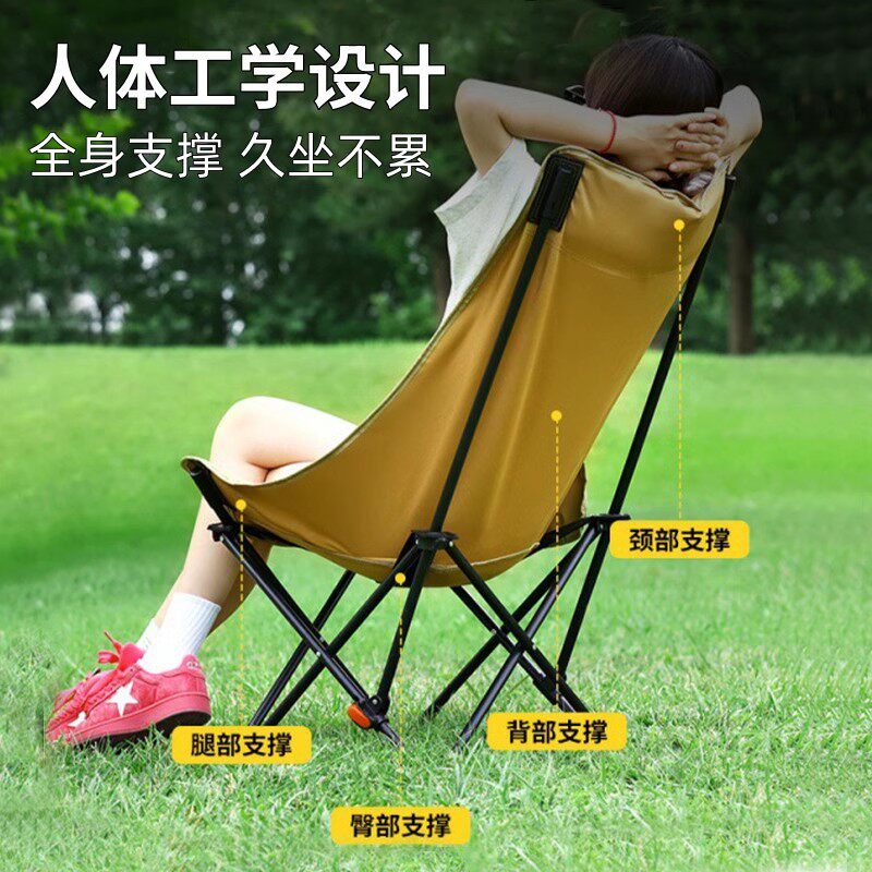 天骆驼加厚夹棉高背月亮椅躺椅户外露营折叠可睡可躺午睡椅懒人钓鱼