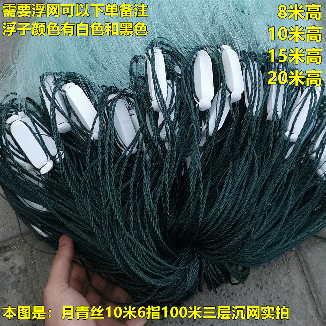 淘加粗丝加重单层三层渔网粘网丝网捕鱼网沉网浮网6指7指挂网大鱼网