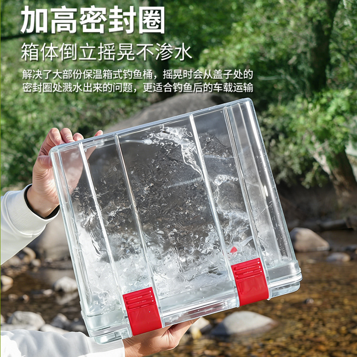 这款车载加厚防溢水密封后备箱装鱼桶,专为钓鱼爱好者设计,采用高强度加厚材质,抗摔耐磨,有效防止运输过程中因颠簸导致的溢水问题。桶身密封性能优异,搭配紧实卡扣与橡胶密封圈,确保活鱼运输过程中水质稳定、氧气充足,大幅提升鱼获存活率。适用于马口、路亚、溪流等多种垂钓场景,可轻松放置于汽车后备箱,便携实用。桶内空间合理,兼顾容量与轻便性,是户外钓鱼、活鱼转运的理想装备。无论是短途出行还是长途跋涉,都能安心携带,让每一次垂钓收获满满。