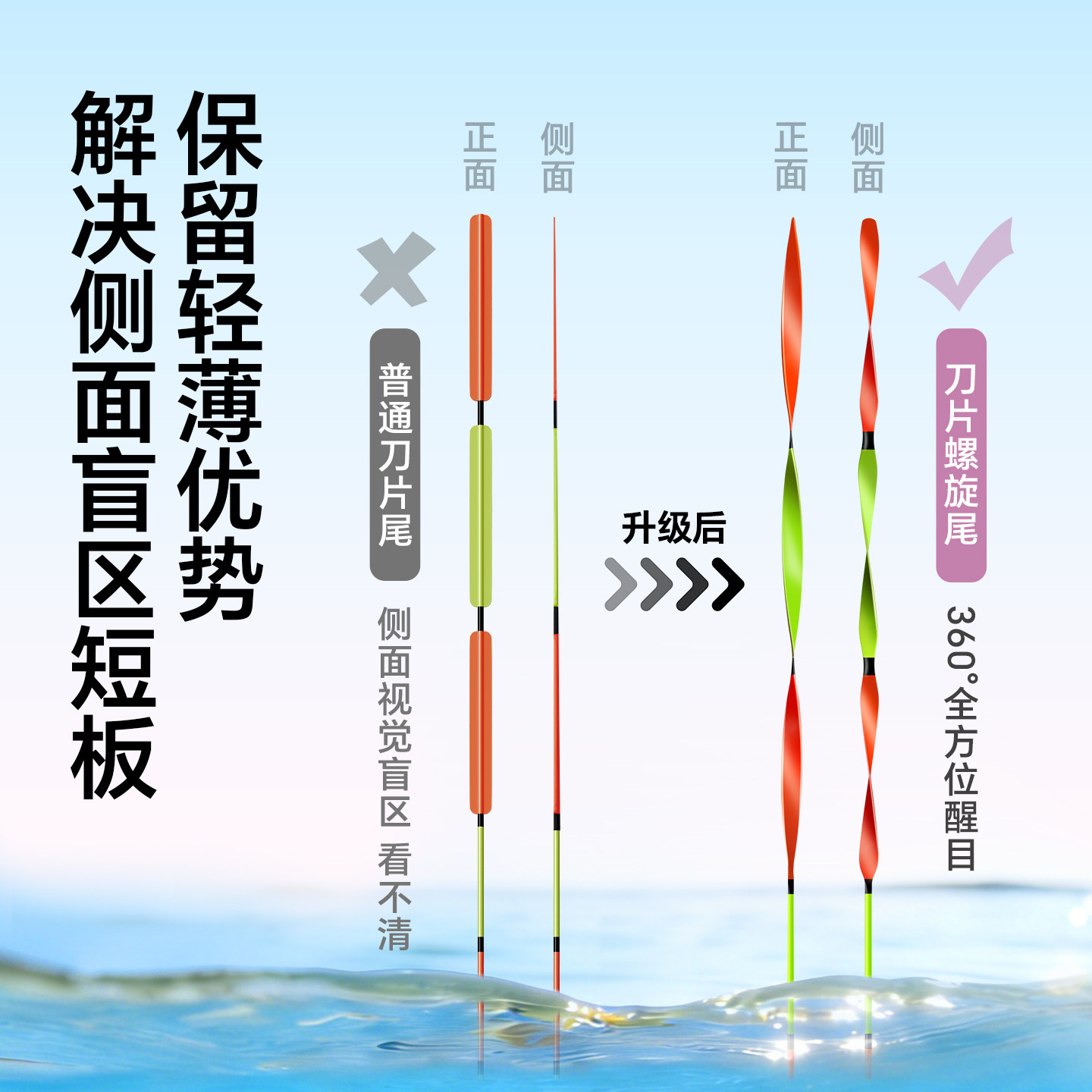 天猫川泽刀片螺旋尾浮漂高灵敏鲫鱼漂醒目加粗尾大物漂抗风浪浮漂cw