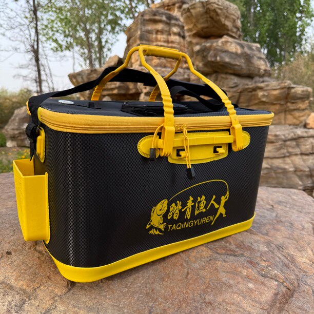淘Tab装鱼桶鱼护桶多功能插杆桶双肩渔具包鱼桶装鱼可折携式活鱼桶