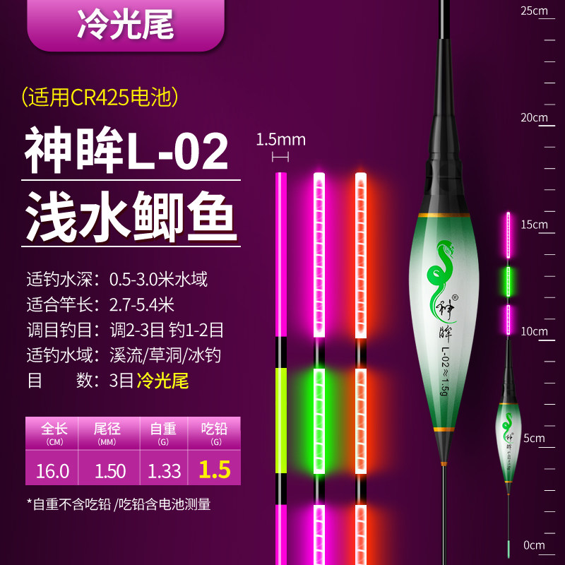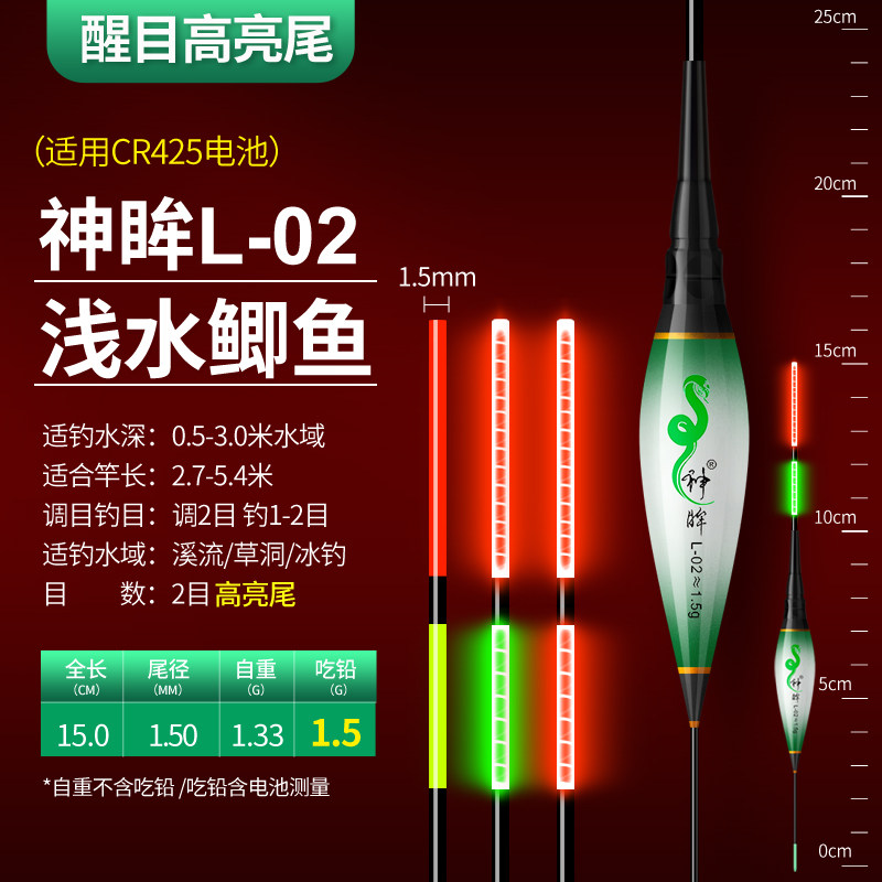超亮高灵敏浅水咬钩变色夜光漂,专为小鲫鱼垂钓设计,适用于草洞、浅滩等复杂水域。采用高亮度LED灯珠,夜间发光清晰醒目,咬钩瞬间自动变色(如绿变红),提升中鱼判断精准度。电子漂身轻量化设计,浮力强、稳定性好,搭配高敏鱼情感应系统,轻微咬口也能及时响应。支持日夜两用模式,白天关闭灯光作普通浮漂使用,夜晚开启夜光功能,一漂双用,节能环保。防水防摔,续航持久,是夜钓草洞、浅水作钓的理想选择,让垂钓更高效、更轻松。