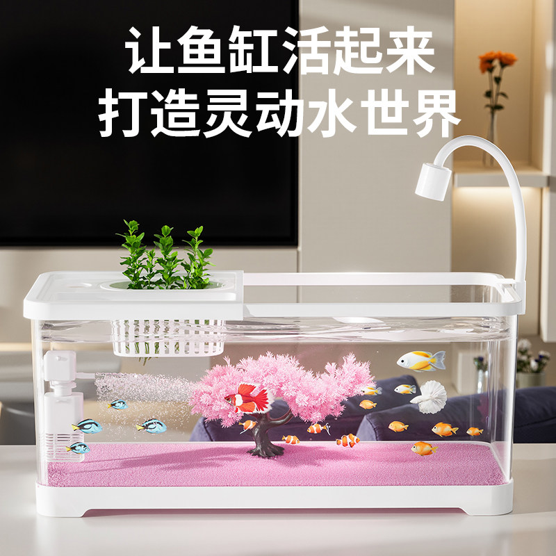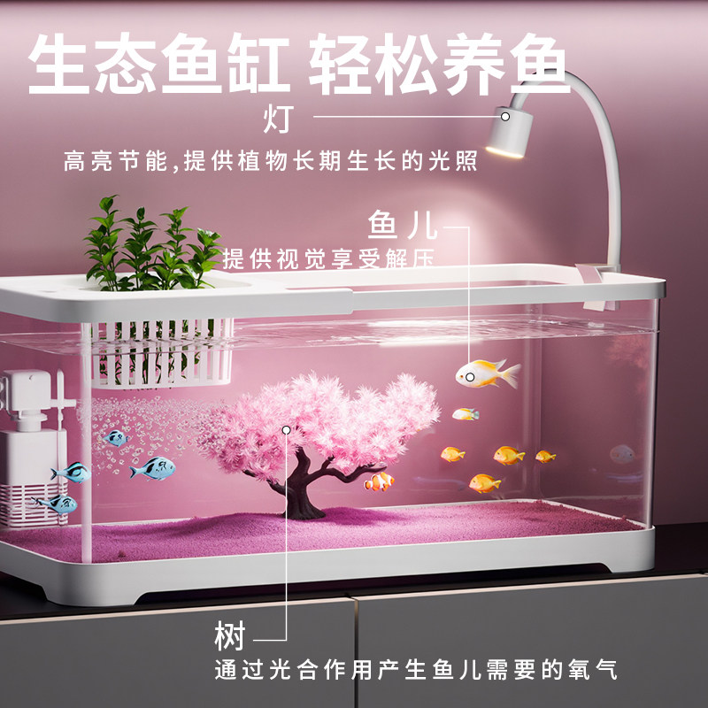 淘宝鱼缸桌面生态造景金鱼缸过滤制氧一体式斗鱼缸家用小型带灯乌龟缸