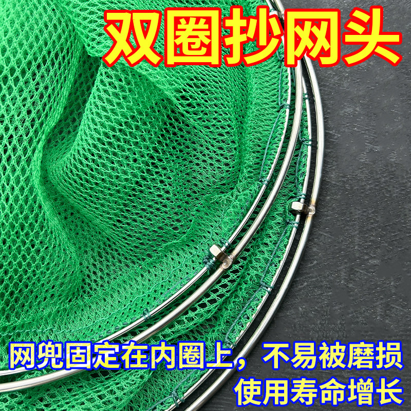 淘新款不锈钢抄网3米抄网竿捞鱼网伸缩杆网抄鱼抄网可折叠抄网头鱼