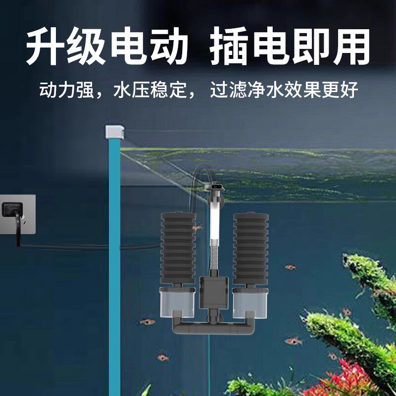 淘宝森森鱼缸水妖精内置生化过滤器缸内电动水妖精反气举增氧过滤循环