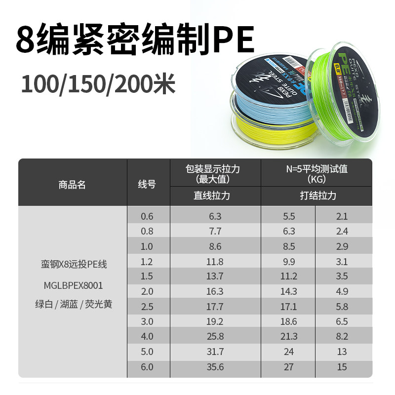 水隼新款蛮钢PE线采用8股高强度聚乙烯纤维编织而成,专为路亚远投设计,具备卓越的顺滑性与耐磨性。线体结构紧密,结节拉力强,有效提升抛投距离与精准度,轻松应对翘嘴、鳜鱼等活性高、冲击力强的目标鱼种。表面经过特殊涂层处理,抗紫外线、耐腐蚀,延长使用寿命。低延展特性确保咬口信号清晰传递,提升中鱼率。无论是淡水湖泊还是溪流作钓,蛮钢PE线都能稳定发挥,是路亚钓手追求远投性能与可靠强度的理想选择。