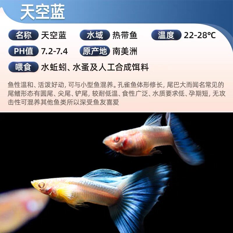 淘宝天空蓝白孔雀鱼缎带精品大尾巴怀孕母鱼临产水草缸热带鱼新手入门