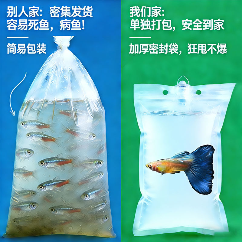 纯种热带淡水孔雀鱼、红箭、凤尾、玛丽均为胎生小型观赏鱼,性情温和,适应力强,适合新手饲养。其中大肚怀孕母鱼腹部明显膨大,接近生产时可见胎斑变深,需单独隔离待产,以防仔鱼被亲鱼吞食。这些鱼种色彩艳丽、尾型优美,尤以孔雀鱼和红箭的鲜红尾鳍著称,凤尾则以其飘逸长尾赢得喜爱。玛丽鱼耐盐耐污,适应力更强。它们适宜水温24–28℃,喜弱碱性水质,杂食性,易繁殖。作为优质胎生观赏鱼,不仅观赏价值高,还能体验亲鱼产仔的乐趣,是水族箱中的热门品种。
