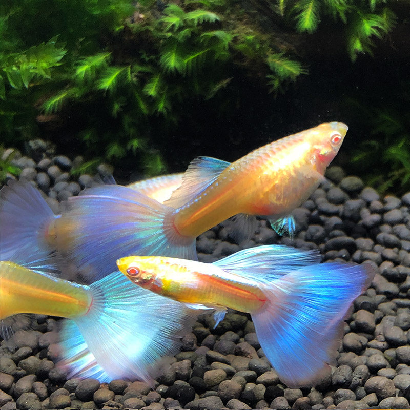 俄罗斯进口莫斯科蓝礼服莫兰缎带孔雀鱼冰蓝热带鱼凤尾鱼淡水鱼