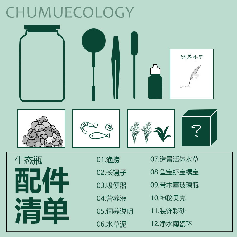 生态瓶微景观免换水diy科学作业材料玻璃办公桌面小鱼缸生态鱼缸