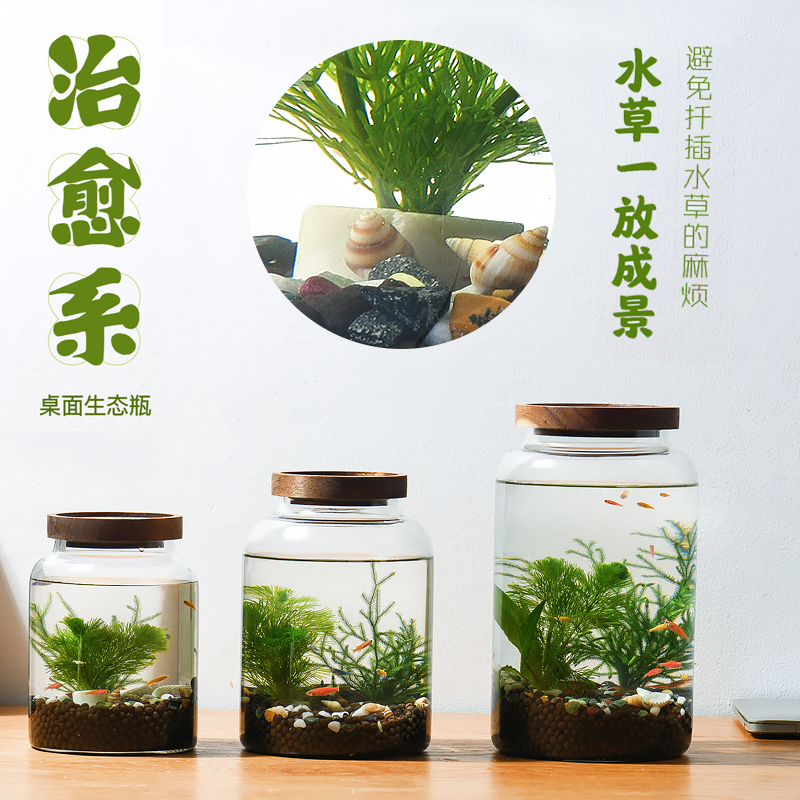 淘宝生态瓶水草小鱼缸玻璃办公桌面微景观生日情侣礼物DIY作业免换水