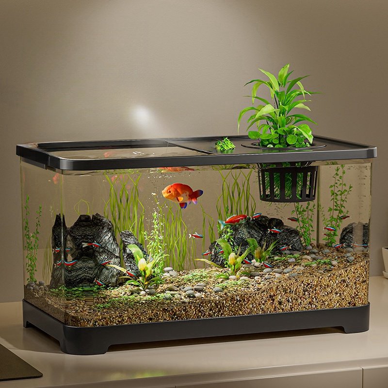 桌面生态鱼缸透明塑料金鱼缸带盖客厅造景耐摔桌面缸办公室创意缸