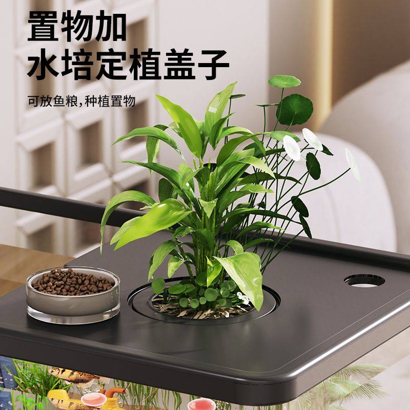 淘嘉赤侧过滤制氧一体式机自循环家用客厅桌面溪流超白玻璃懒人鱼缸