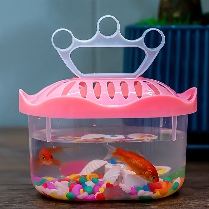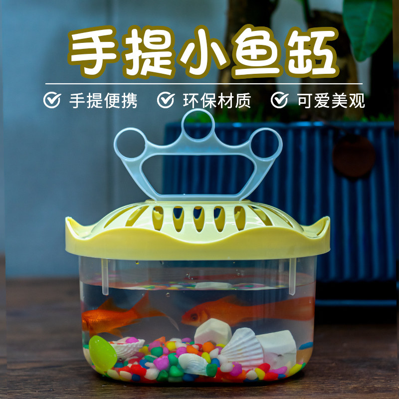淘宝新款pp塑料金鱼缸乌龟缸儿童手提迷你宠物盒饲养运输盒桌面小鱼缸
