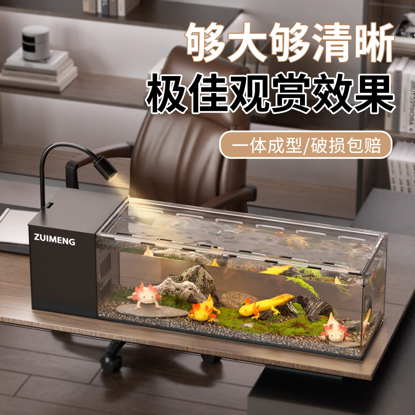 嘉赤侧过滤制氧一体式机自循环家用客厅桌面溪流超白玻璃懒人鱼缸