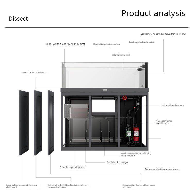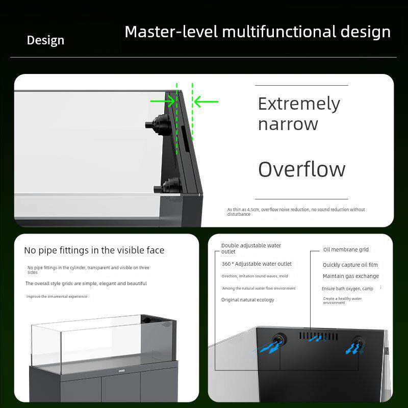 淘宝仟湖鱼有爱家用鱼缸客厅一体式极窄溢流溪流缸超白玻璃底滤水族箱