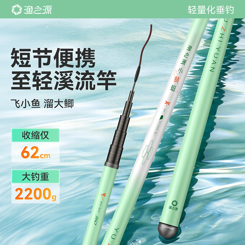 渔之源溪流竿短节鱼竿套装专为初学者设计,轻便易携,适合溪流、小河等近岸垂钓。采用高碳素材制作,竿体轻盈且韧性十足,短节设计方便收纳与携带。套装包含溪流竿、专用鱼竿包(杆包)、渔具包及基础配件,一应俱全,省去搭配烦恼。鱼竿包防水耐磨,分层收纳设计,轻松容纳鱼竿、线组、浮漂等物品;渔具包空间充足,可存放饵料、剪刀、钩子等小工具。整体配置实用贴心,性价比高,是新手入门垂钓的理想选择。无论是周末休闲还是户外旅行,渔之源套装都能让您轻松享受垂钓乐趣。