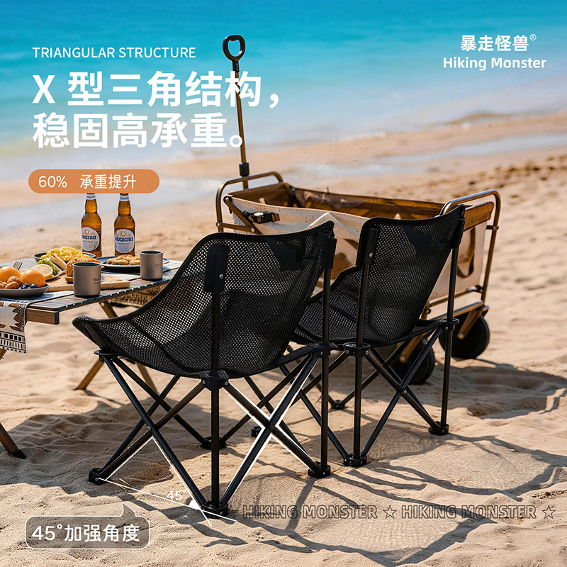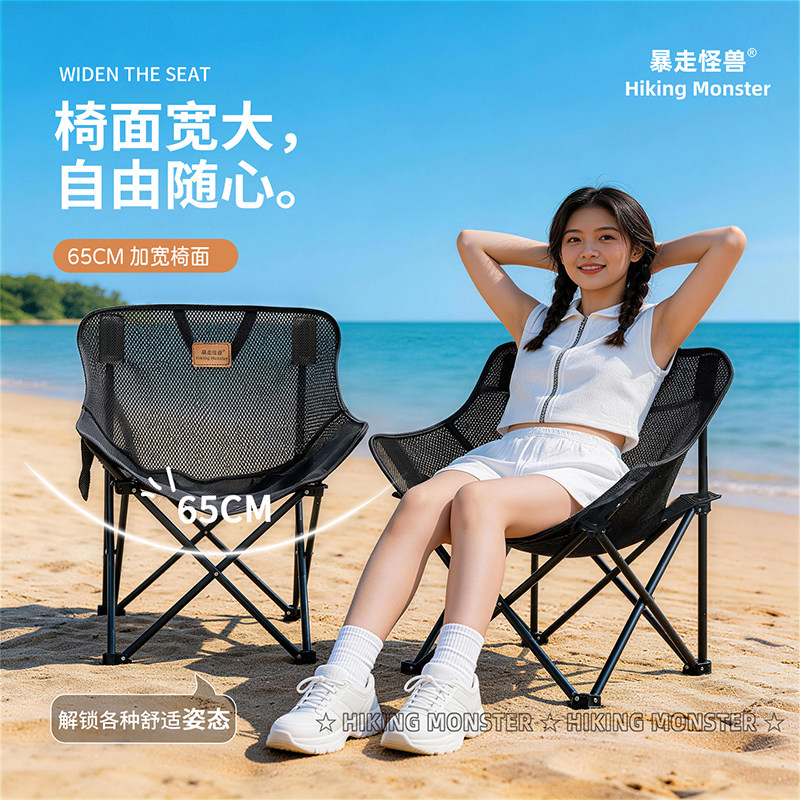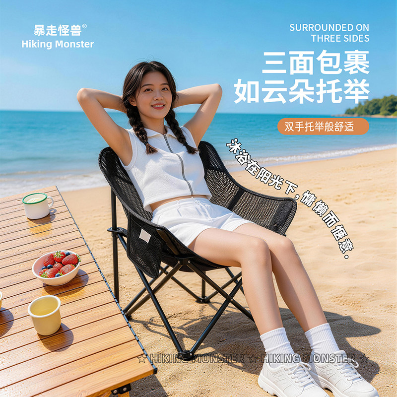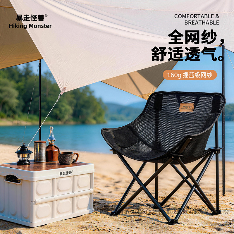 天猫暴走怪兽户外折叠椅网纱透气月亮椅露营椅子休闲便携沙滩椅钓鱼椅