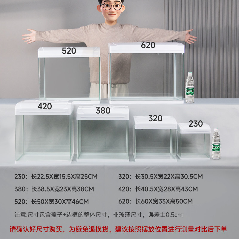淘yee超白玻璃鱼缸背滤缸客厅懒人桌面缸过滤制氧一体式淡海水通用