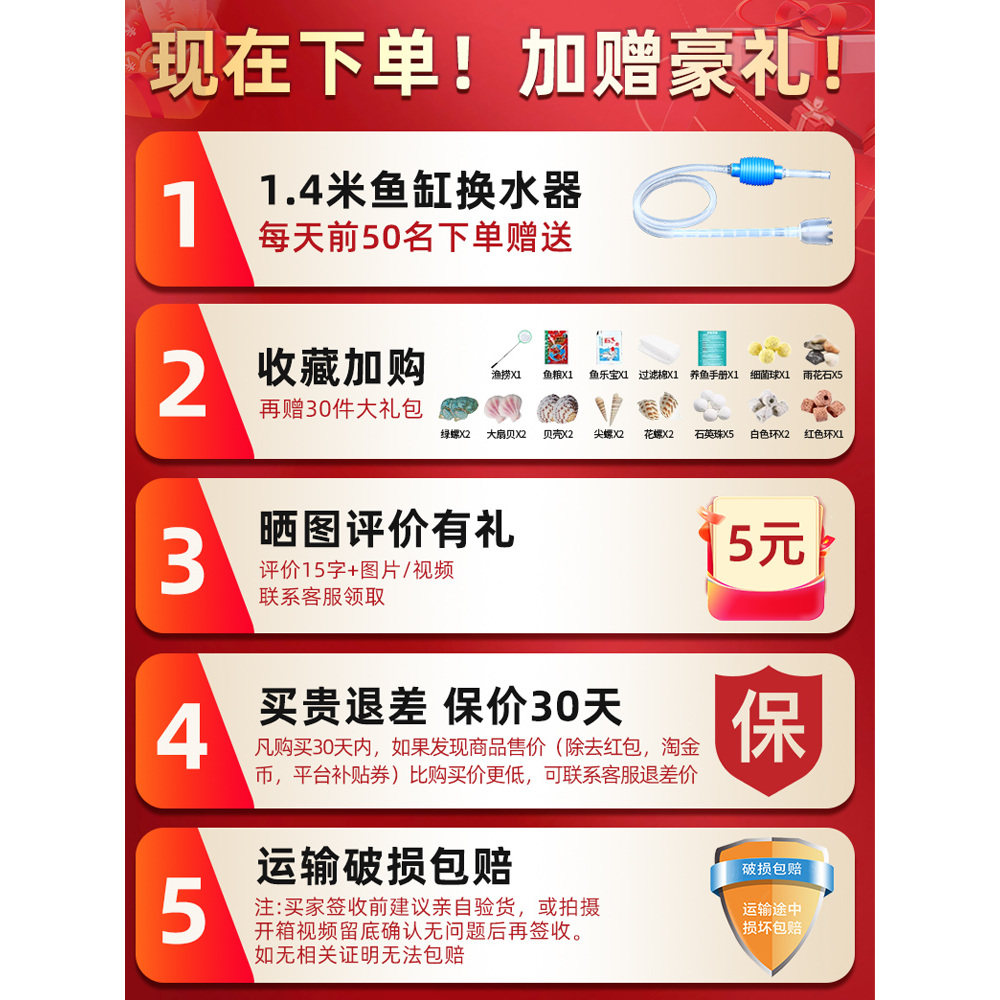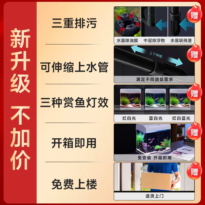 天初迪金鱼缸过滤制氧一体机小型玻璃桌面家用客厅免换水生态水族箱