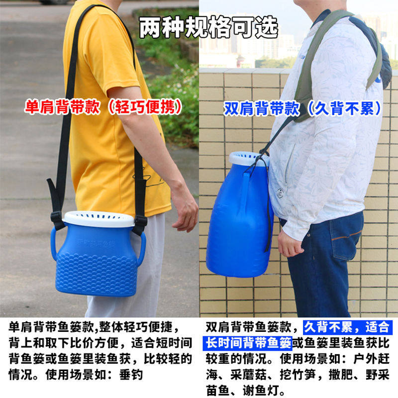 淘新款鱼篓子塑料双肩装鱼黄鳝螃蟹泥鳅小龙虾钓鱼海鲜渔具背篓鱼桶