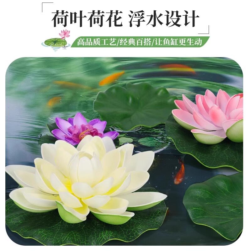 天猫乌龟躲避装饰造景假绿植荷叶鱼缸仿真水草水池漂浮摆件用品套餐