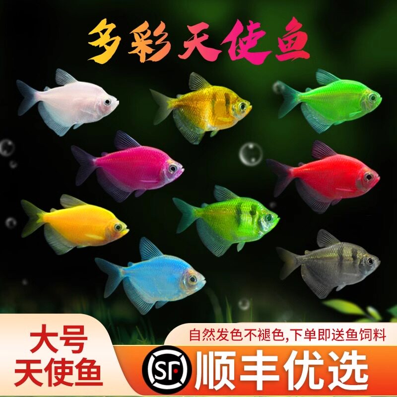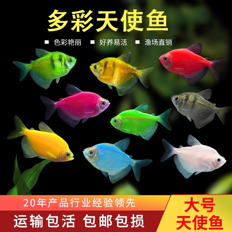 淘天使鱼七彩鱼青苹果柠檬绿老虎新手鱼孔雀斑马灯科小型热带观赏鱼