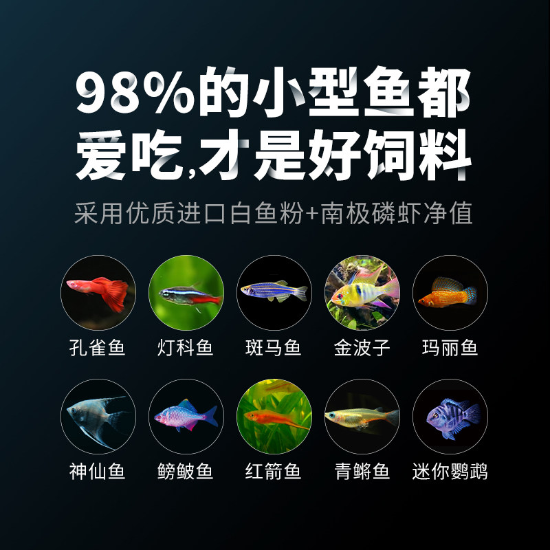 斑马鱼饲料鱼食小颗粒红绿灯鱼鱼粮热带鱼小型鱼灯科鱼白云金丝鱼