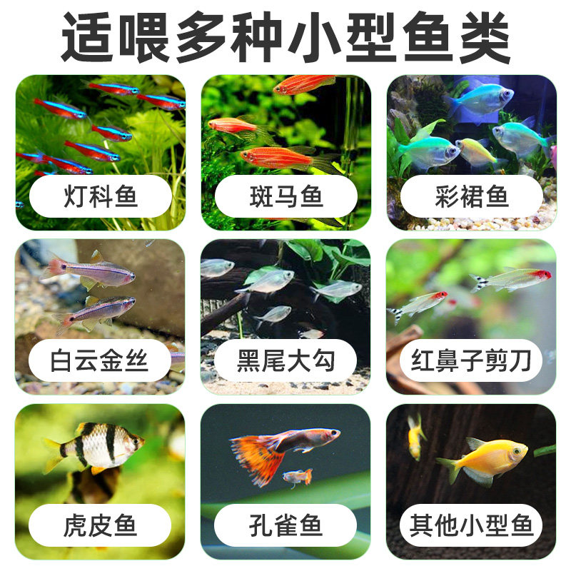 天猫斑马鱼饲料鱼食小颗粒红绿灯鱼鱼粮热带鱼小型鱼灯科鱼白云金丝鱼