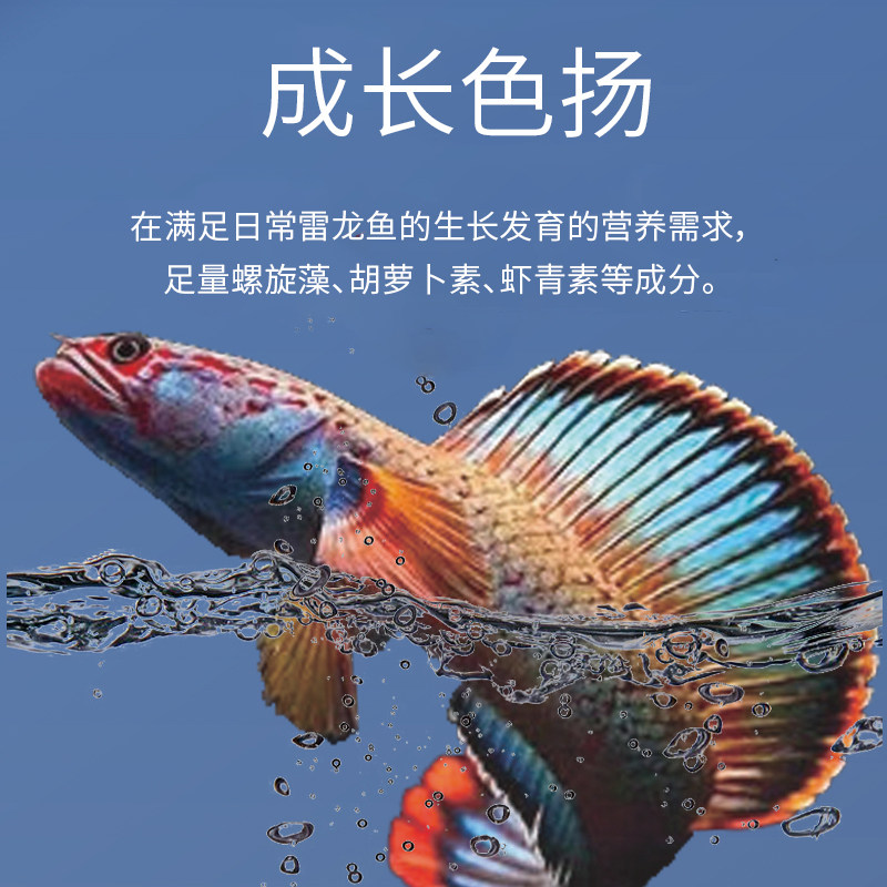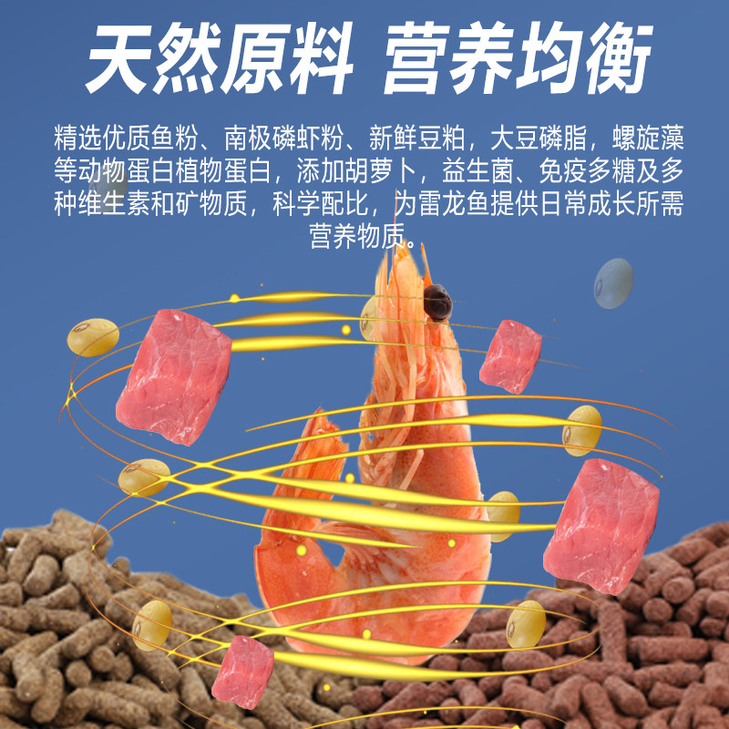 雷龙鱼饲料——阿萨姆黄金眼镜蛇雷龙奶茶七彩雷龙鱼增色鱼粮,专为雷龙鱼设计的高品质专用鱼食。精选优质蛋白原料,科学配比维生素、矿物质及天然增色成分,有效提升鱼体色彩鲜艳度,增强活力与免疫力。独特的“奶茶”风味配方,富含虾青素与螺旋藻,促进发色,使黄金眼镜蛇、七彩雷龙等品种鳞片更加亮丽夺目。颗粒适中,易消化,减少残饵污染,保障水质清洁。适用于多种雷龙鱼品种,长期投喂可显著改善体态与健康状态。是雷龙鱼爱好者提升观赏价值、维持鱼类健康的理想选择。