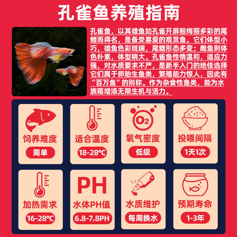 淘孔雀鱼活鱼苗观赏鱼热带小型鱼活体鱼淡水好养耐活精品花老虎孔雀