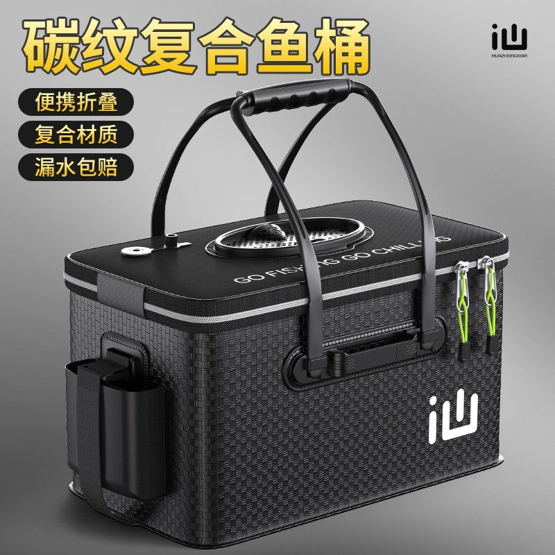 淘一帆精工钓鱼加高可折叠打水桶装鱼桶活鱼箱多功能带绳防跳网渔具