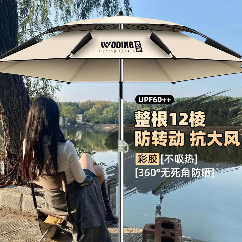 【超强防晒】沃鼎钓鱼大伞,专为户外垂钓爱好者打造,伞面直径达2.6米,提供广阔遮阳防雨空间。采用2.4毫米加厚高强度骨架,稳固抗风,搭配万向调节设计,可自由调节角度,轻松应对不同风向与日照方向。伞面使用高密度防紫外线涂层,UPF50+超强防晒,有效阻隔阳光伤害,同时具备防暴雨功能,雨天垂钓也能安心使用。伞骨精选防锈铝合金材质,轻便耐用,折叠后便于携带。无论是烈日暴晒还是风雨交加,沃鼎钓鱼伞都能为您提供持久可靠的防护,是户外垂钓的理想伴侣。