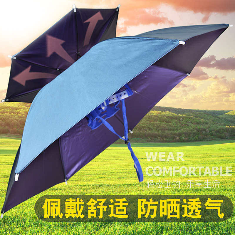 淘宝钓鱼伞帽头戴帽伞大号三折遮阳伞帽双层透气折叠防雨防晒头带式特