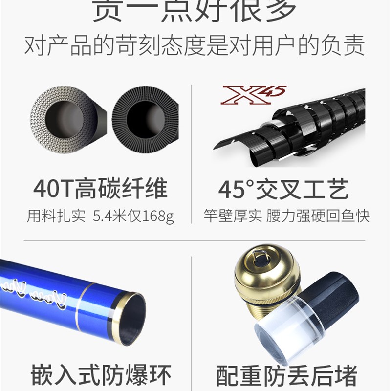 淘鱼竿台钓竿路亚竿手竿高碳逆丝鲤鱼竿轻硬5H6H钓鱼杆E18