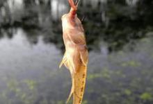 此鱼名叫“爬地虎”头大鱼小,常趴在水底,肚子里没有多少东西