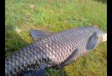 它是钓友老张苦守一个礼拜。在钓获这条巨物之前,就听闻在水库边饮牛的放牛老大爷说。突然一个黑脊背的家伙游过来,喝水的黄牛吓得挣脱缰绳跑了,以前有人说水库里有水怪,那绝对是水里有大鱼,要想钓获大鱼“在陆续投放了40斤玉米、30斤小麦、20斤田螺等饵料来做窝子后,接连好多天都只钓上来一些10多斤的草鱼、鲤鱼,钓上一条或鱼进窝吞食游离,即捏几大团饵补投至钓点。因大鱼进窝尾巴摆动,是难把鱼引过来的。