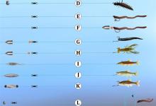 图片引用自pinterest活饵的选择取决于钓鱼的地点、时间、钓鱼方法。能搭配出各种各样钓组来钓获对象鱼。基础钓组需要一个转环、鱼钩,但是章鱼钩是非常适合生物饵。钓组各式各样主要原因是钓坠种类和大小,通常使用咬铅(或者BB铅)和子弹头钓坠。通常使用更大、更加流线型的钓坠,比如橡胶芯式、内联式和夹扣式钓坠就上图钓组搭配解说下:B、在转环前面增加配重钓坠,钓坠和鱼钩的距离会影响鱼饵下落的状态。
