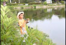 家有小小钓鱼郎,钓龄与年龄齐飞,钓兴与身高比肩……