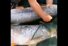 大连钓人钓起“水库锦鲤王”,1米多长,超过30公斤