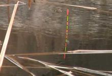 二、重铅找底 重铅找底是为了大致判断出钓点水深,具体操作是在铅皮座上加一块大铅皮后抛入水中,浮漂在铅坠重力的作用下肯定会全部没入水中,然后提竿逐步上拉浮漂直至浮漂刚好露出水面,此时铅坠到漂尾顶部的距离就是大致水深。
