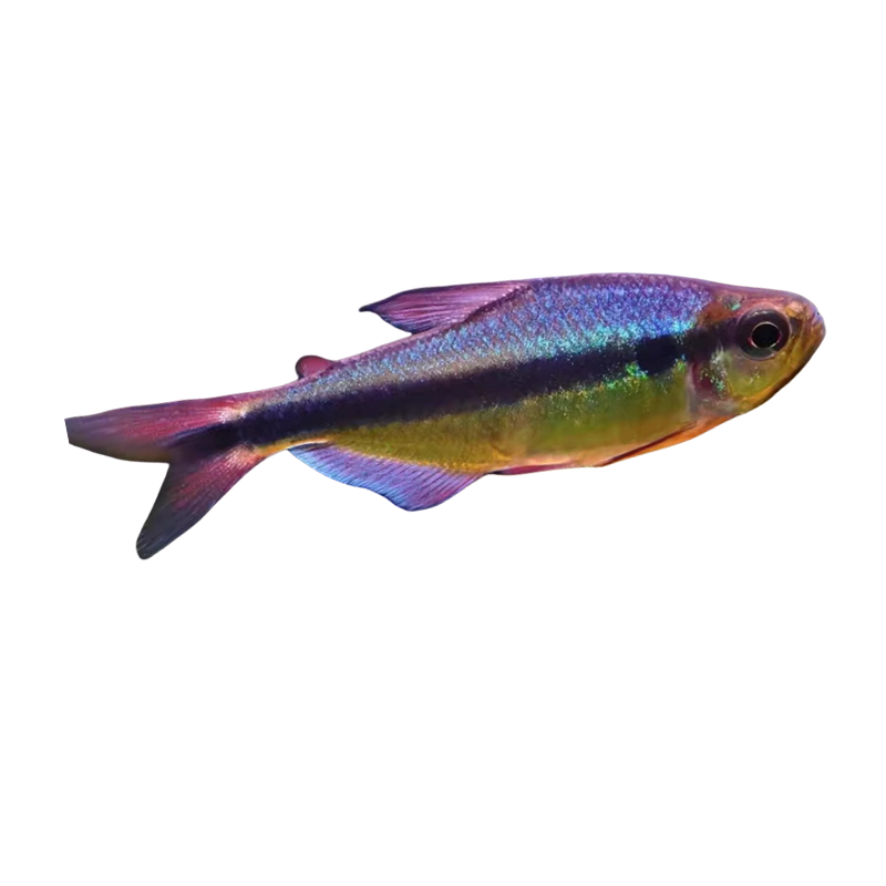 幻彩青魔鬼灯鱼,又称皇室青魔鬼或靛蓝魔鬼灯,是一种极具观赏价值的小型淡水鱼,体长通常3-4厘米,适合高端草缸造景。其体色绚丽,主调为深邃靛蓝,搭配荧光青绿与银白条纹,在灯光下泛出梦幻金属光泽,宛如水中宝石。游姿灵动优雅,群游性强,常在水体中上层活动,为草缸增添灵动生机。对水质要求较高,喜弱酸至中性软水,适宜温度24-28℃。性格温和,可与其他小型灯鱼混养。因其稀有性与出众颜值,被誉为“草缸中的贵族”,深受高端水族爱好者追捧,是打造精品生态缸的点睛之笔。