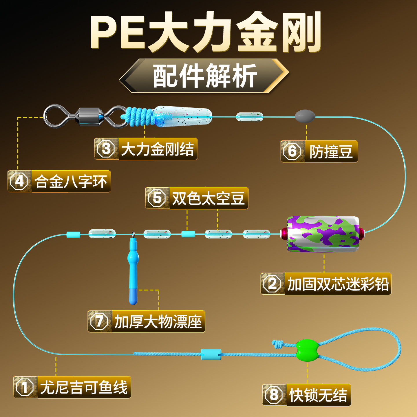淘日夜两用大力马线组套装成品绑好主线子线双钩鲢鳙大物巨物钓鱼线