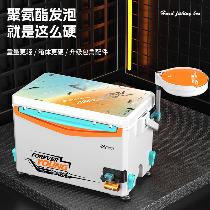 一帆精工可坐钓鱼箱多功能超轻超硬29L聚氨酯四脚升降冰川橙钓箱