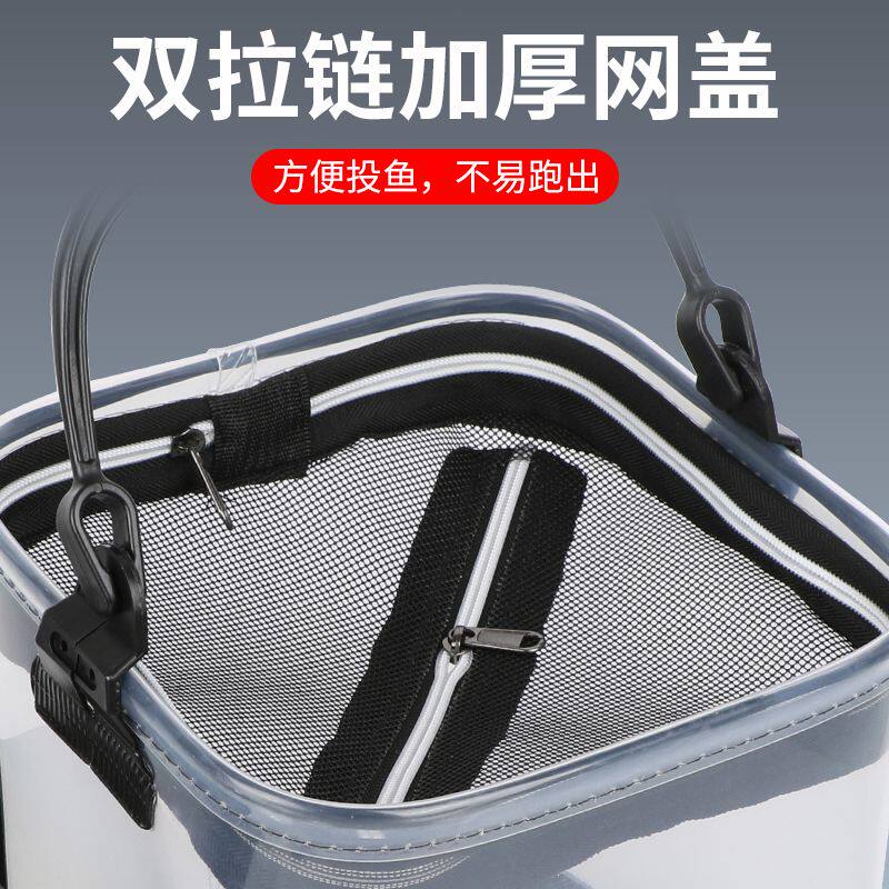 透明打水桶新型钓鱼桶小鱼箱野钓专用便携式折叠鱼护活鱼桶钓鱼桶